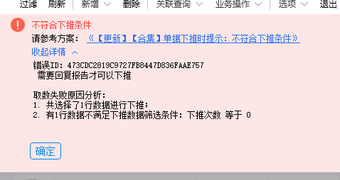 简介上下游单据分别都增加一个整数字段,命名:下推次数。单据反写规则添加如下:单据转换增加如下:禁止重复下推