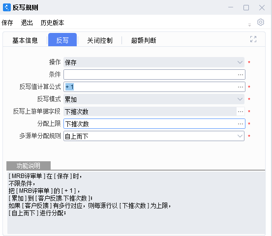 上下游单据分别都增加一个整数字段,命名:下推次数。单据反写规则添加如下:单据转换增加如下:禁止重复下推文章阅读 -