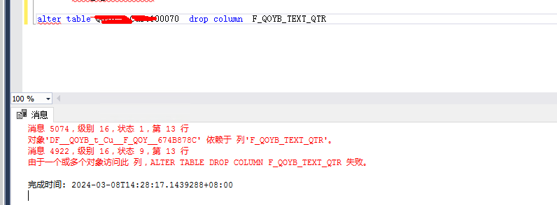 很多小伙伴会发现,在金蝶BOS二开过程中,会创建了很多字段。但是后面觉得这些字段不用了。直接在BOS开发界面删除,但是实际上数据库还有这个字段信息。如何彻底删除呢?首先确定好这些字段是无用字段。复制这个字段名,然后在BOS开发平台删除后,进入数据库先查询这个表,select * from 表名 会发现这个字段依然存在于数据库中。如果这个字段已经有数据了,有的不能直接删除的,会报错解决办法如下:先把