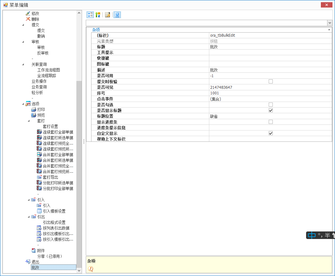 首先把产生的业务数据删掉,再反审核单据类型。结果发现删除不了去数据库把这个单据类型 状态改为 暂存或者创建 在BOS中可以看到单据类型这个表状态列表对应的值 改为 Z 或者 AselectFDOCUMENTSTATUSfromT_BAS_BILLTYPEwhereFNUMBER='ECBJSQD'updateT_BAS_BILLTYPEsetFDOCUMENTSTATUS='