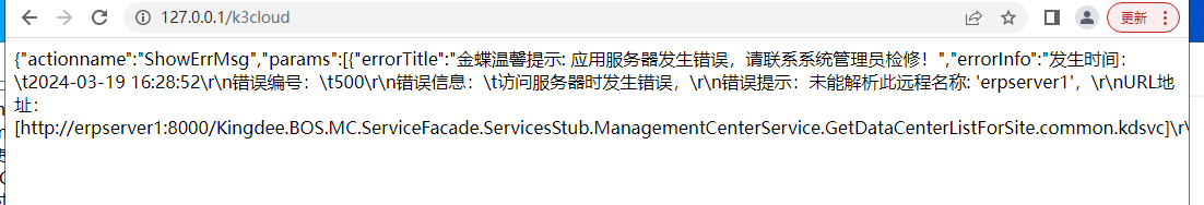 由于修改了服务器的名称所以找不到这个名称了。找到配置文件改为正确的计算机名称即可C:Program Files (x86)KingdeeK3CloudWebSiteApp_DataCommon.config用记事本打开。查找原计算机名称。修改即可