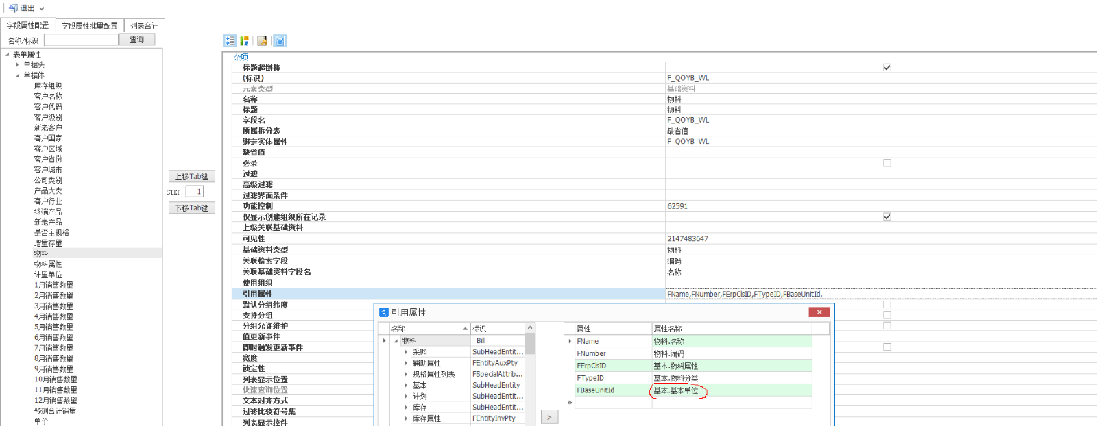金蝶云星空二开单据物料的基本单位携带。物料需要引用基本单位属性增加计量单位字段,值更新打钩物料值更新事件配置单位对应关系