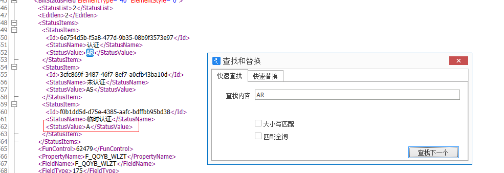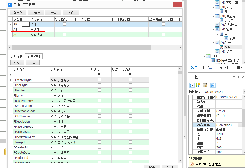 简介默认单据状态的值只能输入一位字符,我们来修改他的字符长度。在BOS添加单据状态字段,然后填写一位字母。保存关闭窗口。再打开XML,找到改字母,修改你想要的二位字符。进到数据中,找到这个表中字段,修改数据类型,char括号里面的数字。即可。最终效果
