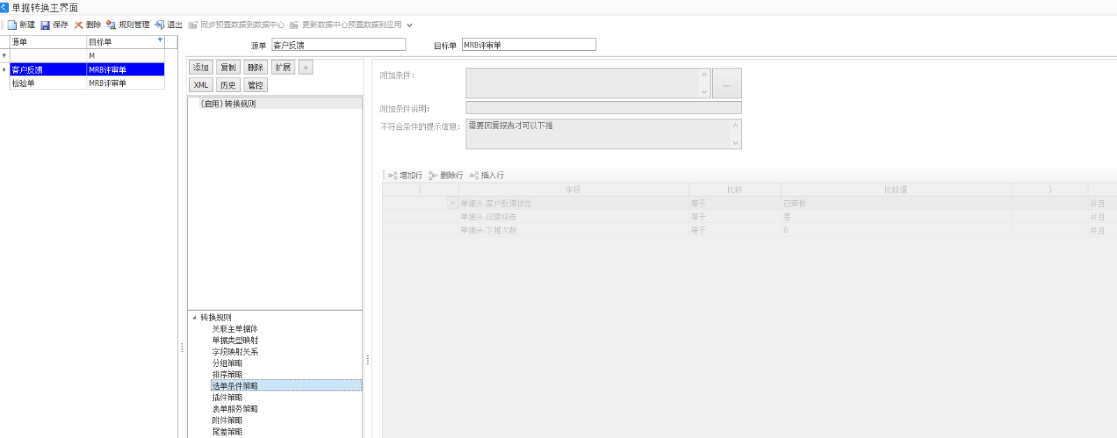 简介上下游单据分别都增加一个整数字段,命名:下推次数。单据反写规则添加如下:单据转换增加如下:禁止重复下推
