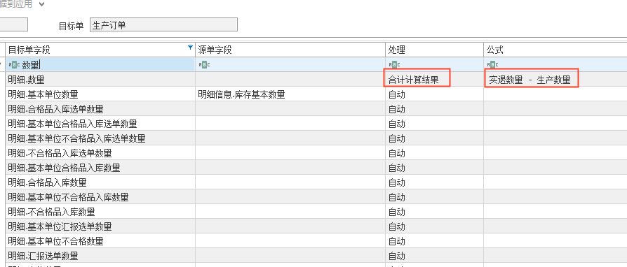 简介同一个客户销售退货单多行相同物料的时候,下推生产订单同物料的数量合并下推成一行生产订单数量合并考虑到多次下推情况,所以使用公式计算,每次下推数量会扣除上次已经下推的数量实现效果如下图:2行数量下推合并成一行105。